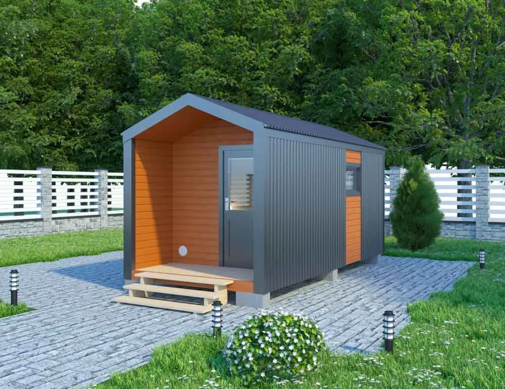 ![]() | Бытовка для дачи в стиле хай-тек с цветным профлистом 3х2.4 | 3х2,4 | 7,2 | ![]() | ДВП-Оргалит: 124 000 | Вагонка дерев.: 132 000 | OSB: 130 500 |